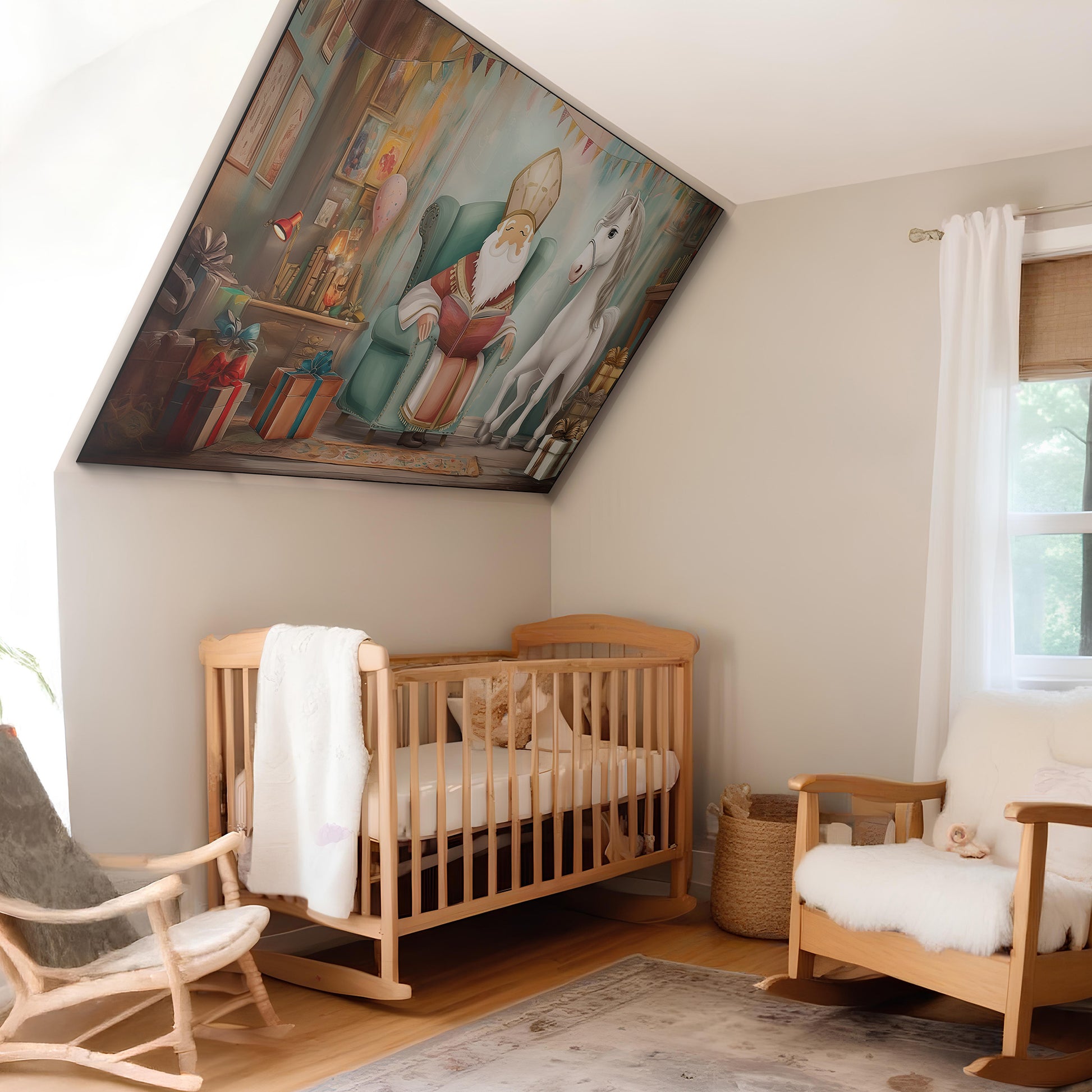 Spannende nachten, vrolijke liedjes en cadeautjespret: laat de kinderkamer meegenieten met dit betoverende Sinterklaasdoek. Eenvoudig te wisselen en herbruikbaar, jaar na jaar.