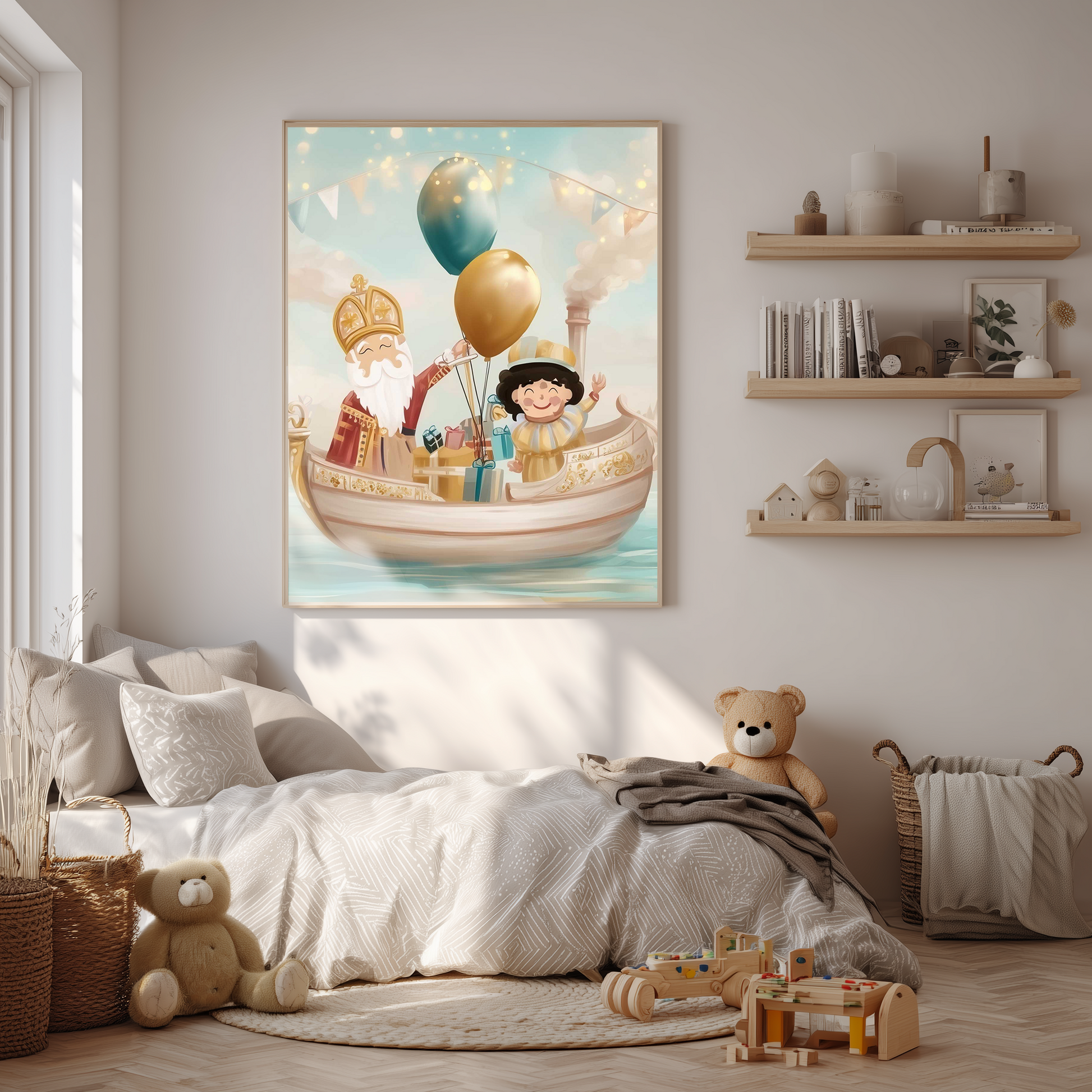 Spannende nachten, vrolijke liedjes en cadeautjespret: laat de kinderkamer meegenieten met dit betoverende Sinterklaasdoek. Eenvoudig te wisselen en herbruikbaar, jaar na jaar.