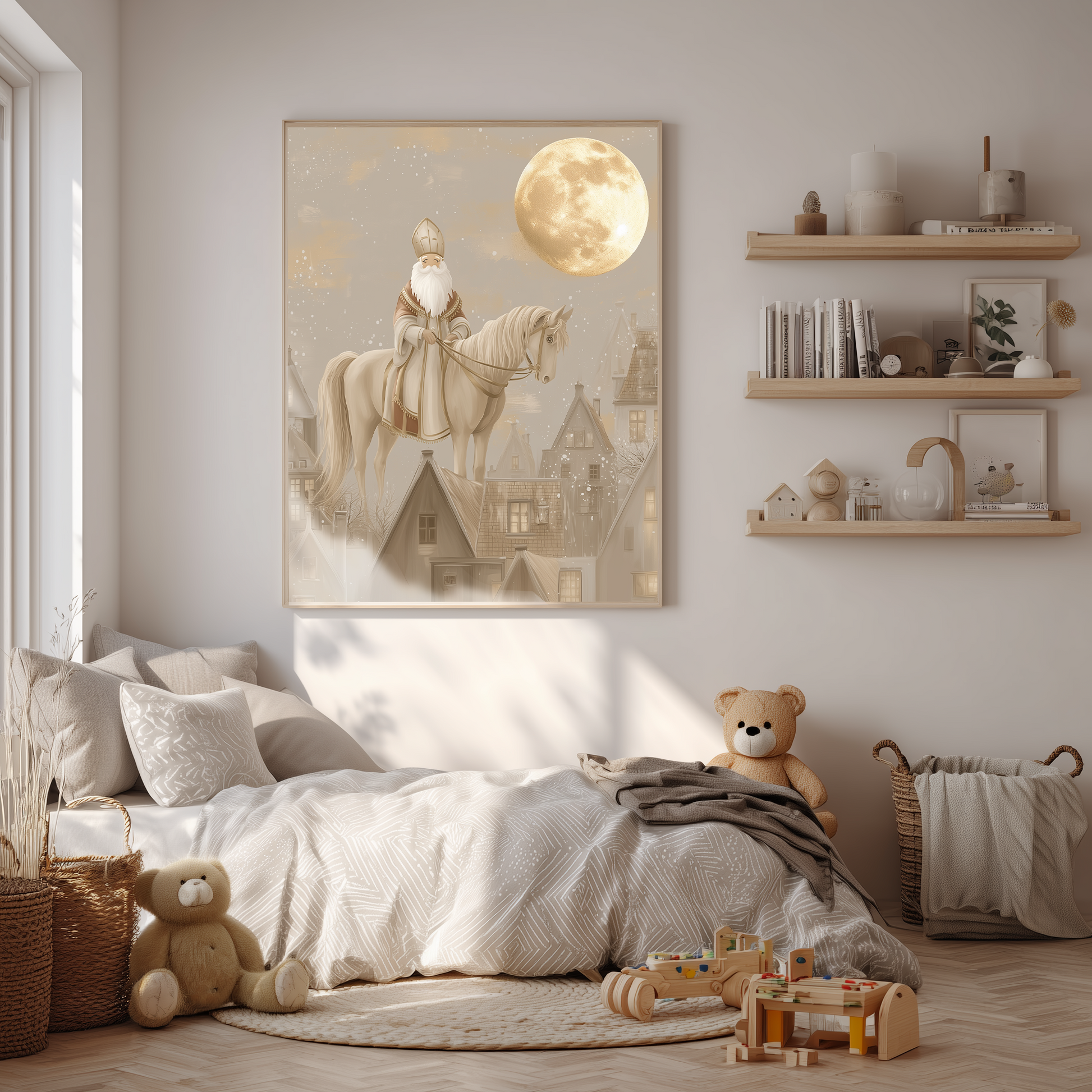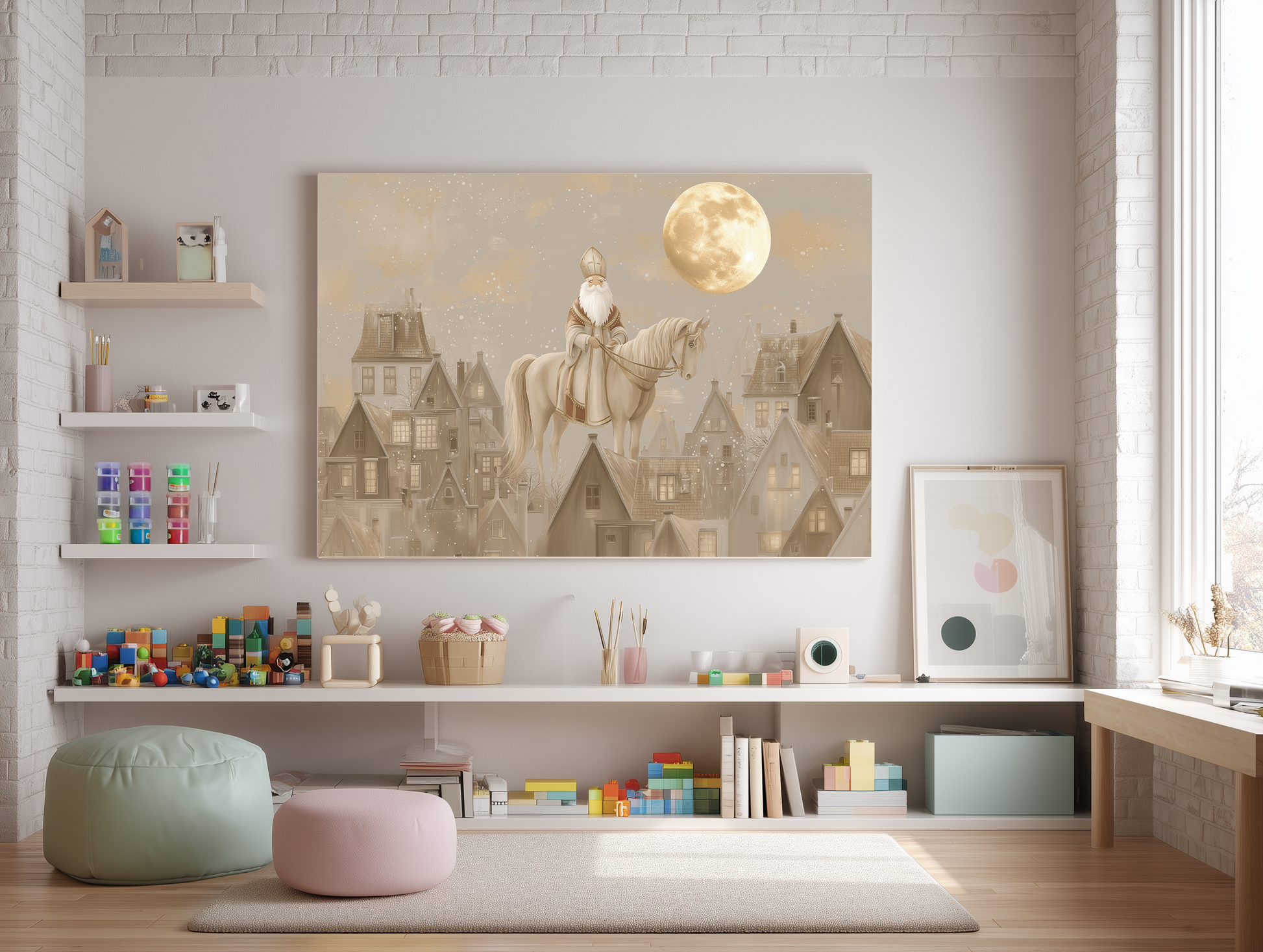 Spannende nachten, vrolijke liedjes en cadeautjespret: laat de kinderkamer meegenieten met dit betoverende Sinterklaasdoek. Eenvoudig te wisselen en herbruikbaar, jaar na jaar.